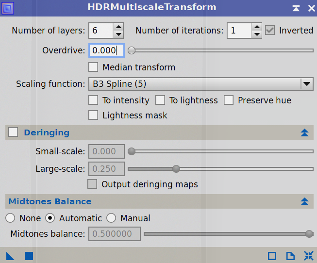 Okno procesu HDRMultiscaleTransform.