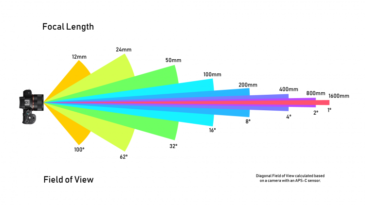 Jak widać im większa ogniskowa obiektywu/teleskopu tym węższe pole jego widzenia (przybliżenie)